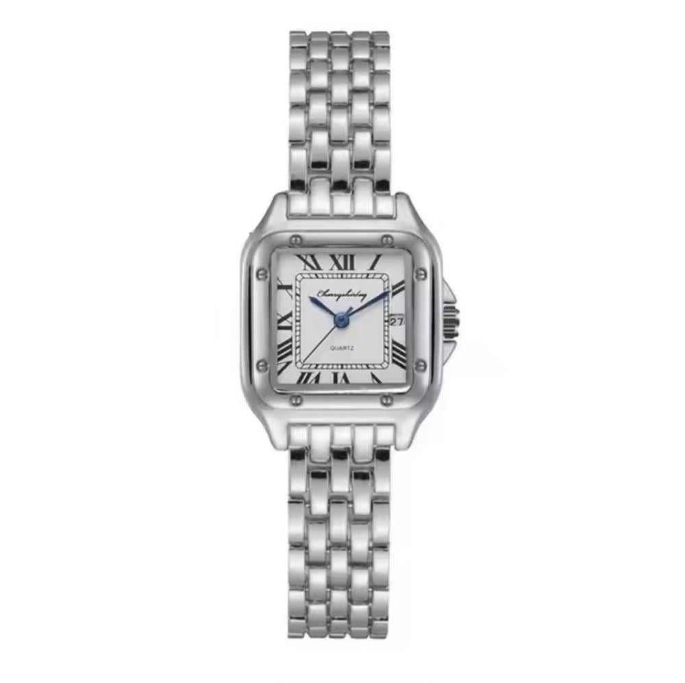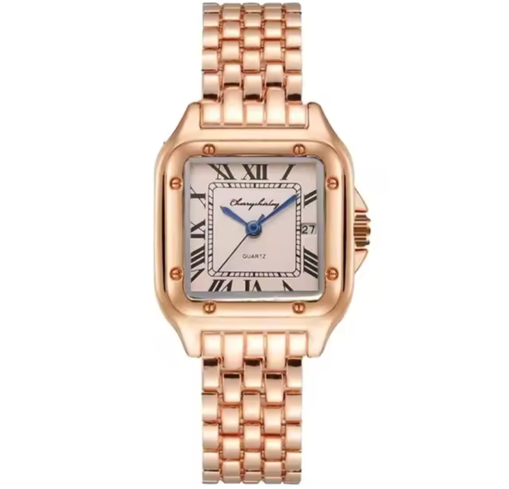 ساعة كوارتز عصرية للسيدات فاخرة بقياس بسيط وجودة مربعة مطلية بالذهب ساعات نسائية للأعمال من الفولاذ المقاوم للصدأ ساعة قابلة للطي