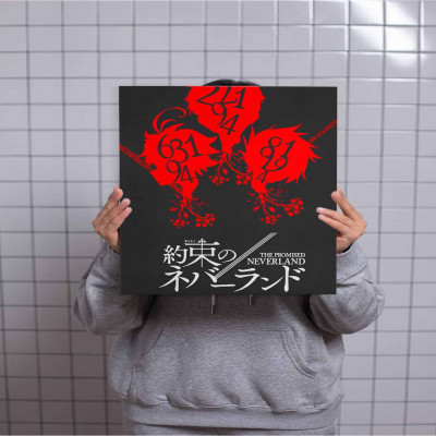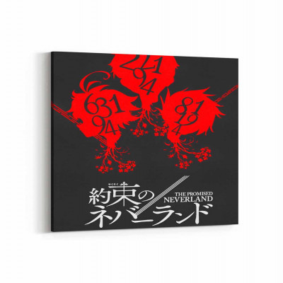 لوحة كانفاس على إطار خشبي بتصميم أكواد الشخصيات الرئيسية أنمي نيفرلاند الموعودة