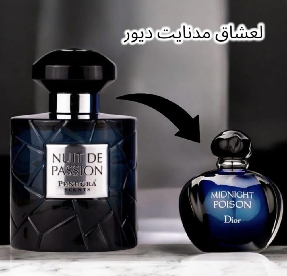 عطر شرقي - زهري للنساء . Nuit de Passion صدر عام 2023. إفتتاحية العطر البرغموت و الماندرين (اليوسفي); قلب العطر الفراوله, الباشون فروت و الورد; قاعدة العطر تتكون من الفانيليا, الباتشولي و العنبر.