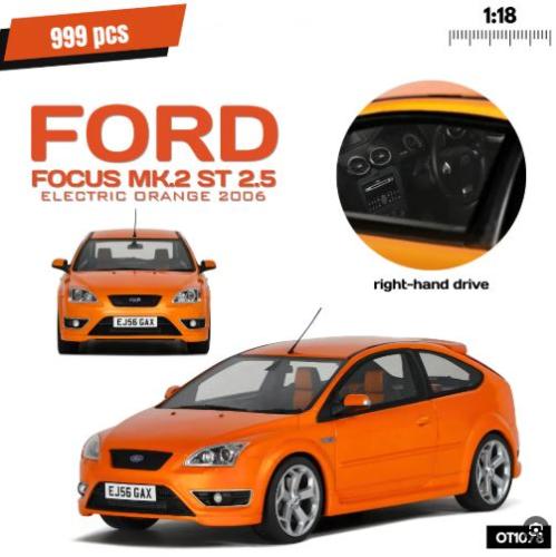 OTTO-MOBILE - FORD ENGLAND - FOCUS MKII ST 2.5 2006 - RHD VERSION Scale: 1/18 Manufacturer code: OT1078 Colour: ORANGE MET Material: resin Year: 2006 Notes: LIMITED 999 ITEMS
