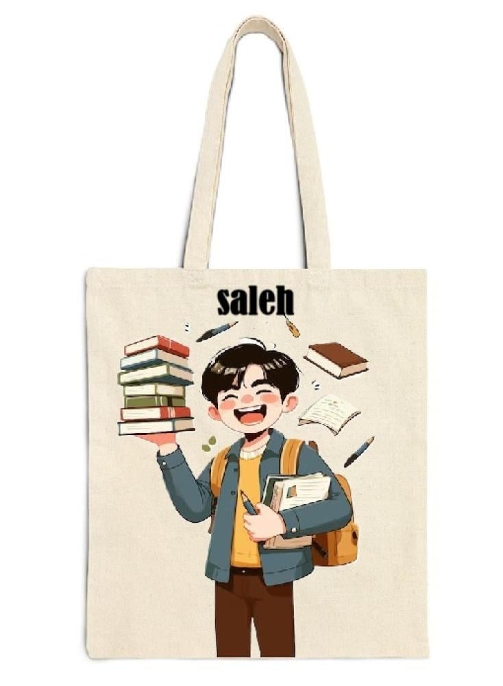 حقيبة قماشية حجم وسط (توت باق) بصورة طالب مدرسة مع تخصيص الاسم، حقيبة سميكة وجودتها عالية ، يفضل عند الغسل قلب الحقيبة بحيث تكون الطباعة من الداخل .