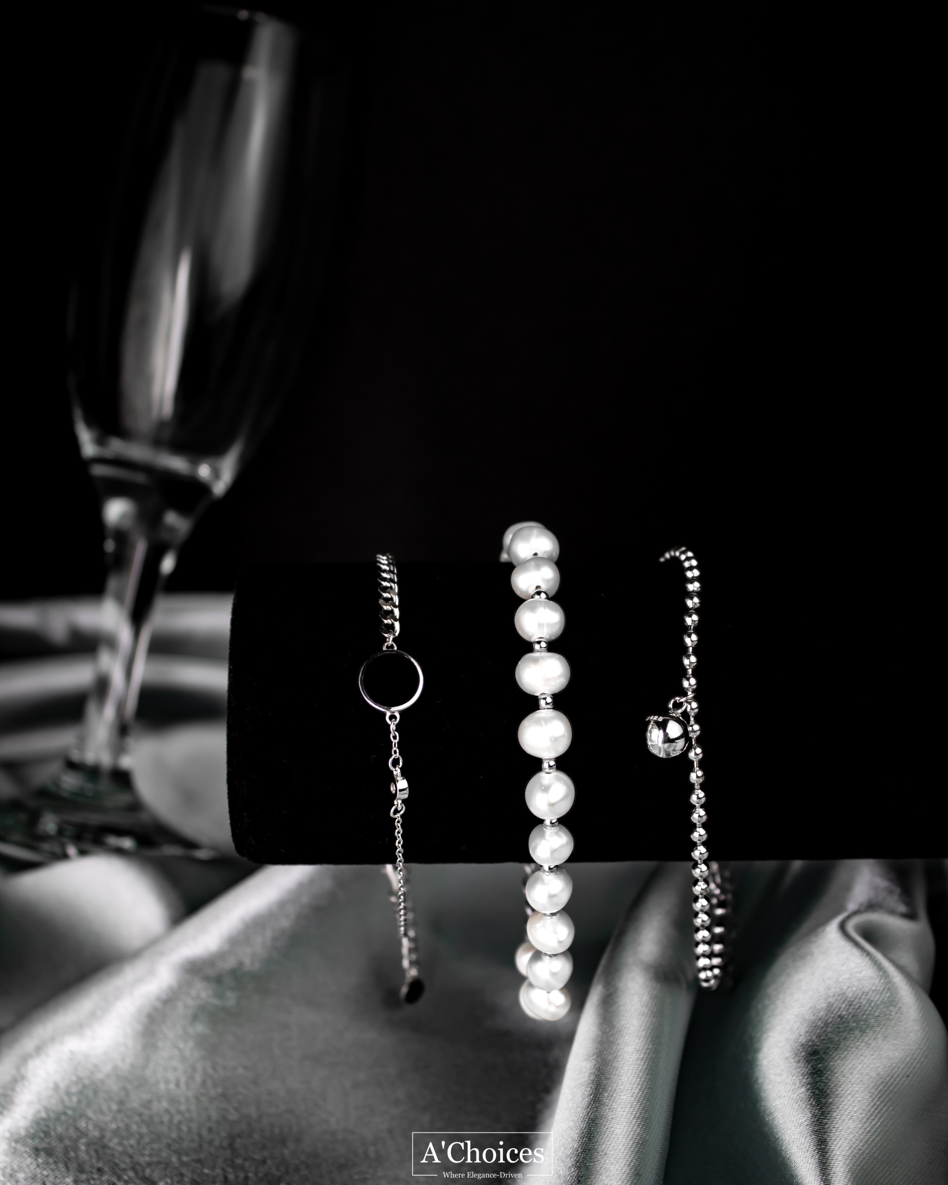 خلخال ناعم مصنوع من الفضة يتميز بوجود حجر أسود وزيركون، وهو حجر نادر يتميز بجماله ولمعانه الذي يجذب الأنظار. كما أن استخدام الزيركون في صنع الحلي يعطيه تأثيرًا بصريًا رائعًا.