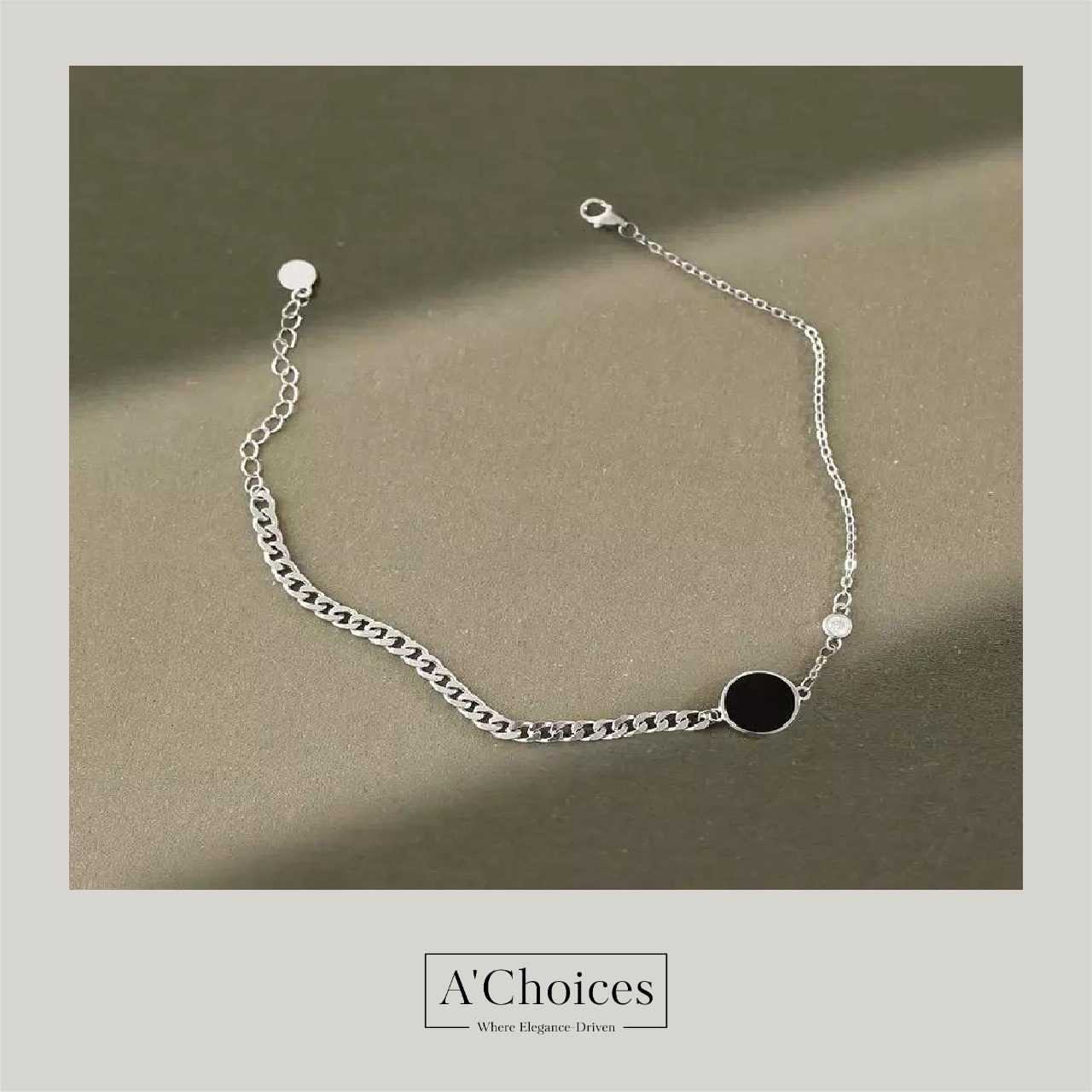 خلخال فضة عيار 925 بتصميم كلاسيكي بحجر اسود وزيركون بتصميم رائع وبسيط وبجوده عاليـه ضمن تشكيلة واسعه من خلاخيل فضه خفيفة الوزن ومريحه مصممة للأشخاص محبي المجوهرات ذات التصميم البسيط ... مُعبأة بشكل جميل من متجر اي تشويسز ..