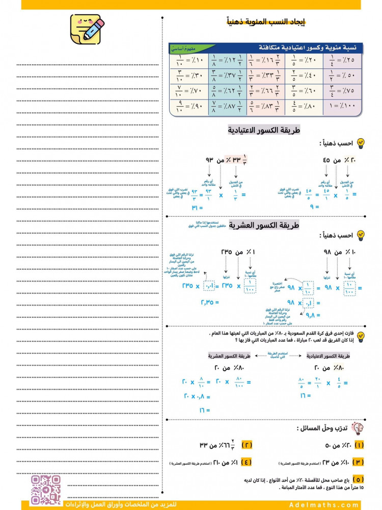 عندك مشكلة مع النسب المئوية وحسابها ؟