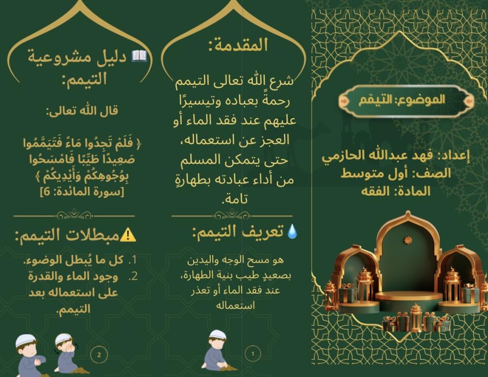 � مطوية التيمم – فقه أول متوسط (باسم الطالب
