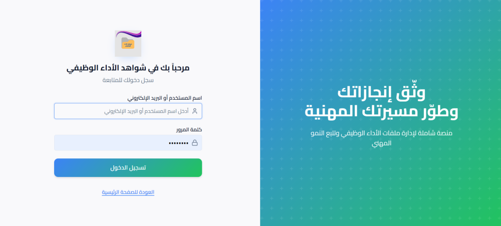 ويوجد قسم لإضافة وتوثيق بيانات النمو المهني .