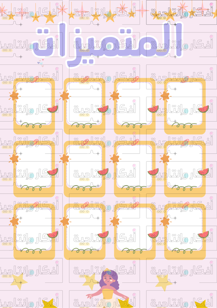 في هذا اللوحات خانة لكتابة اسم الطالبة المتميزة
