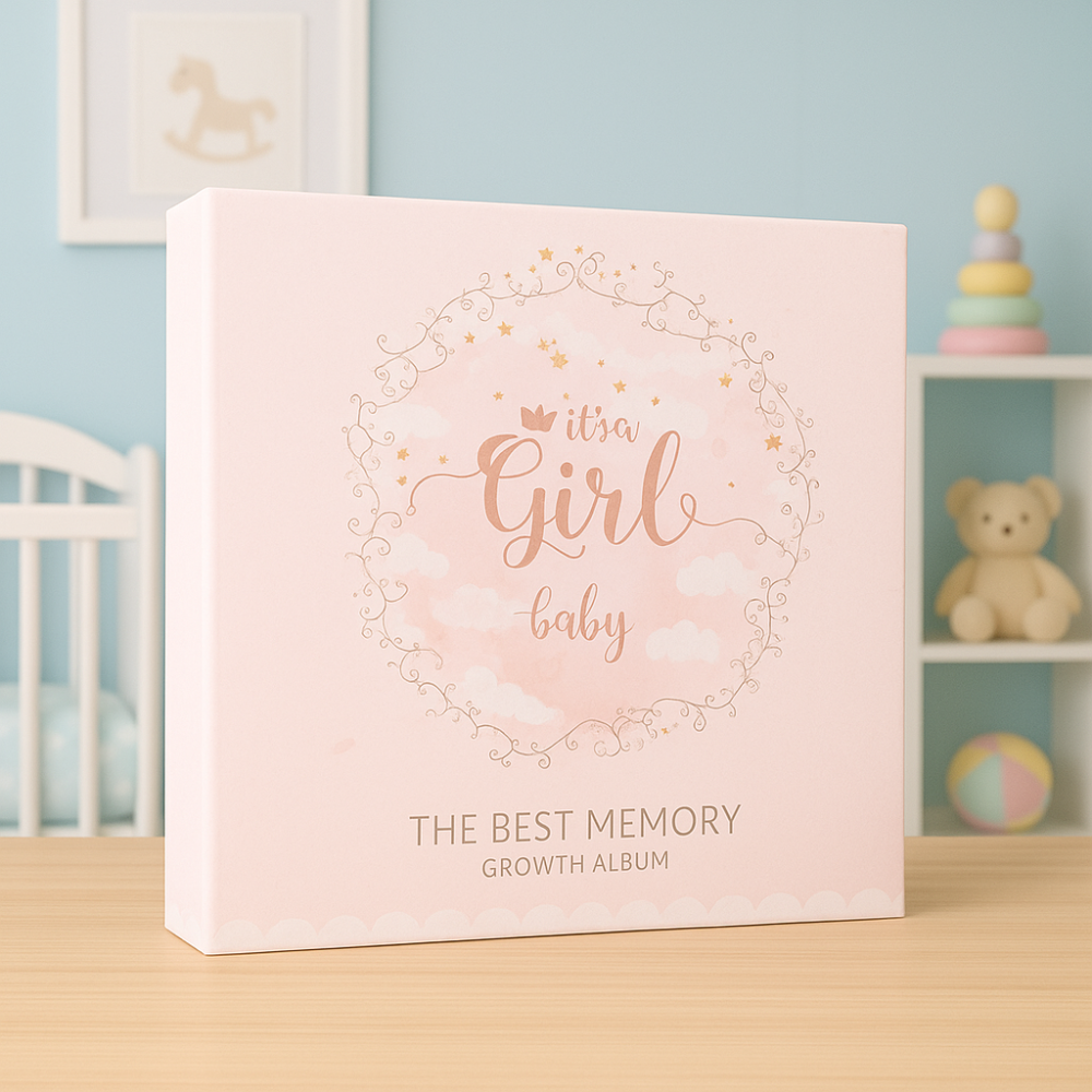 ألبوم صور نمو الطفل المصمم خصيصًا ليكون صندوق ذكريات مليء بالحب والتفاصيل.