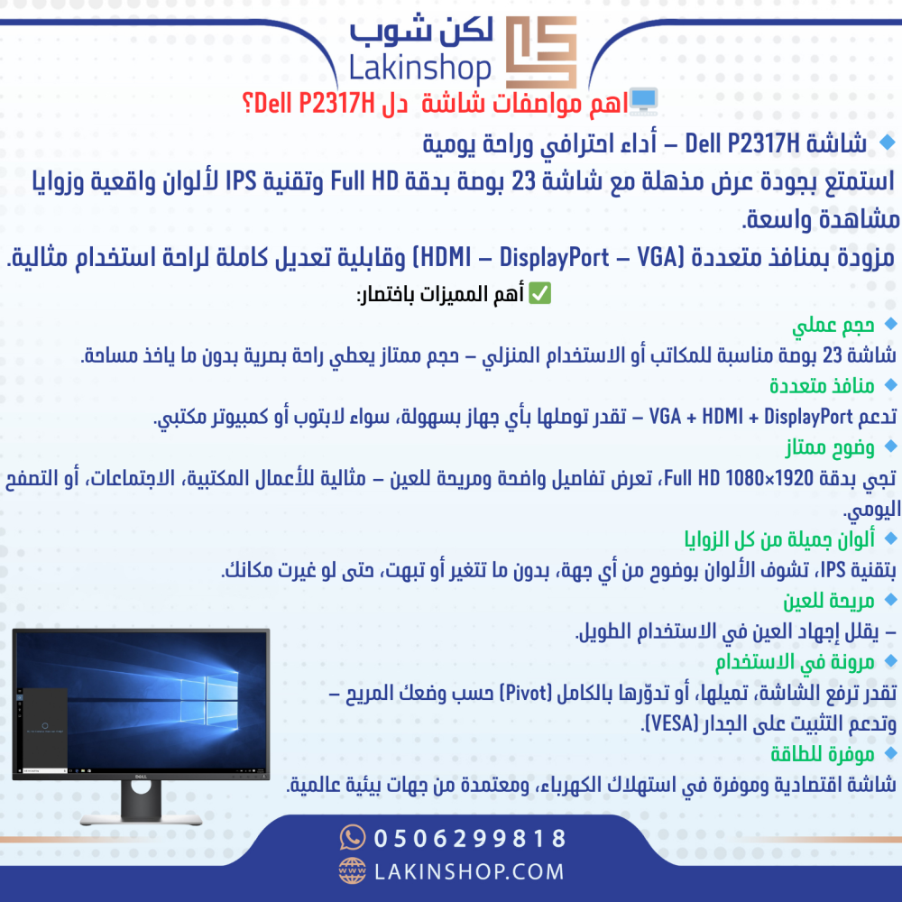 🔹 حجم عملي : شاشة 23 بوصة مناسبة للمكاتب أو الاستخدام المنزلي – حجم ممتاز يعطي راحة بصرية بدون ما ياخذ مساحة.