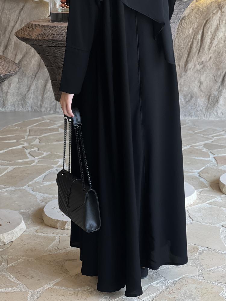 التفاصيل : عباية كلوش مع قصات وقيطان ( تقدرين تختارين يكون أسود او ابيض )