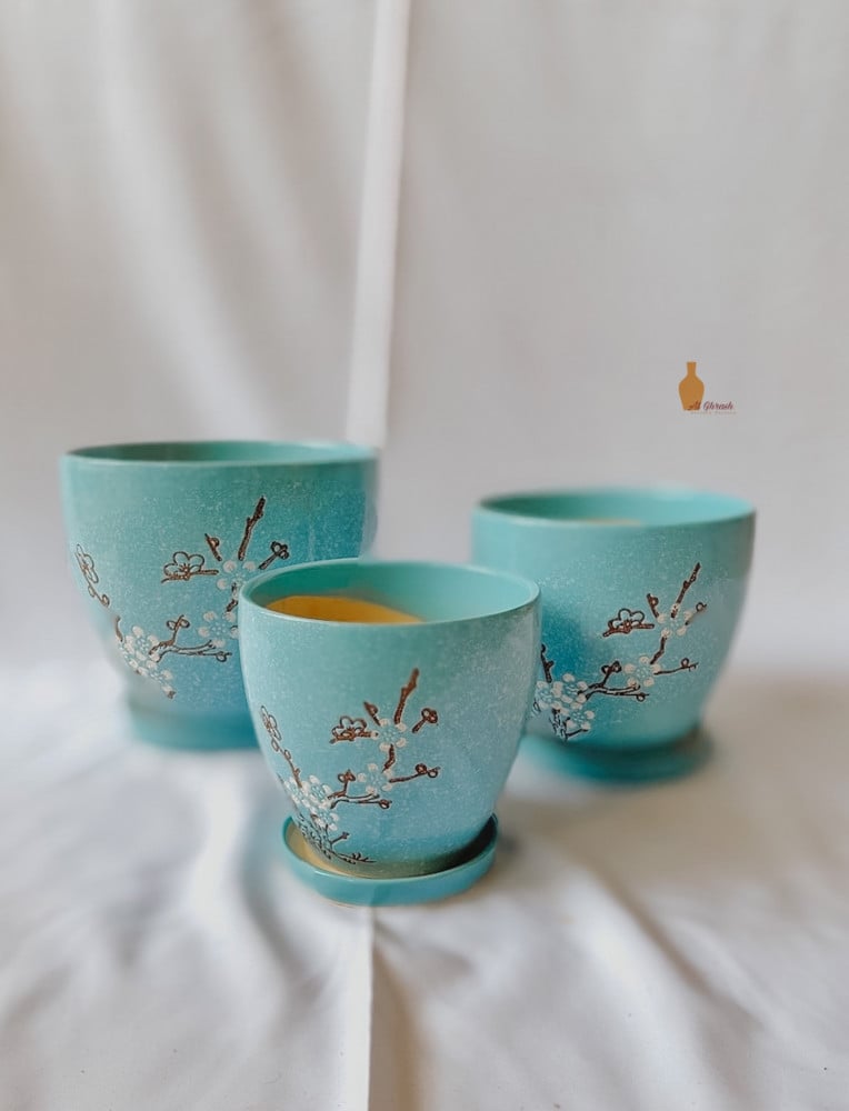 طقم احواض زراعة مكون من ثلاث قطعمقاسات المنتج:الصغير:الارتفاع 16.5 سمالعرض 16.5 سمالاوسط:الارتفاع 19.5العرض 20الاكبر :الارتفاع 23العرض 25ملاحظة قد تختلف المقاسات المذكورة اعلاه بواحد سم اكثر او اقل عن الواقع