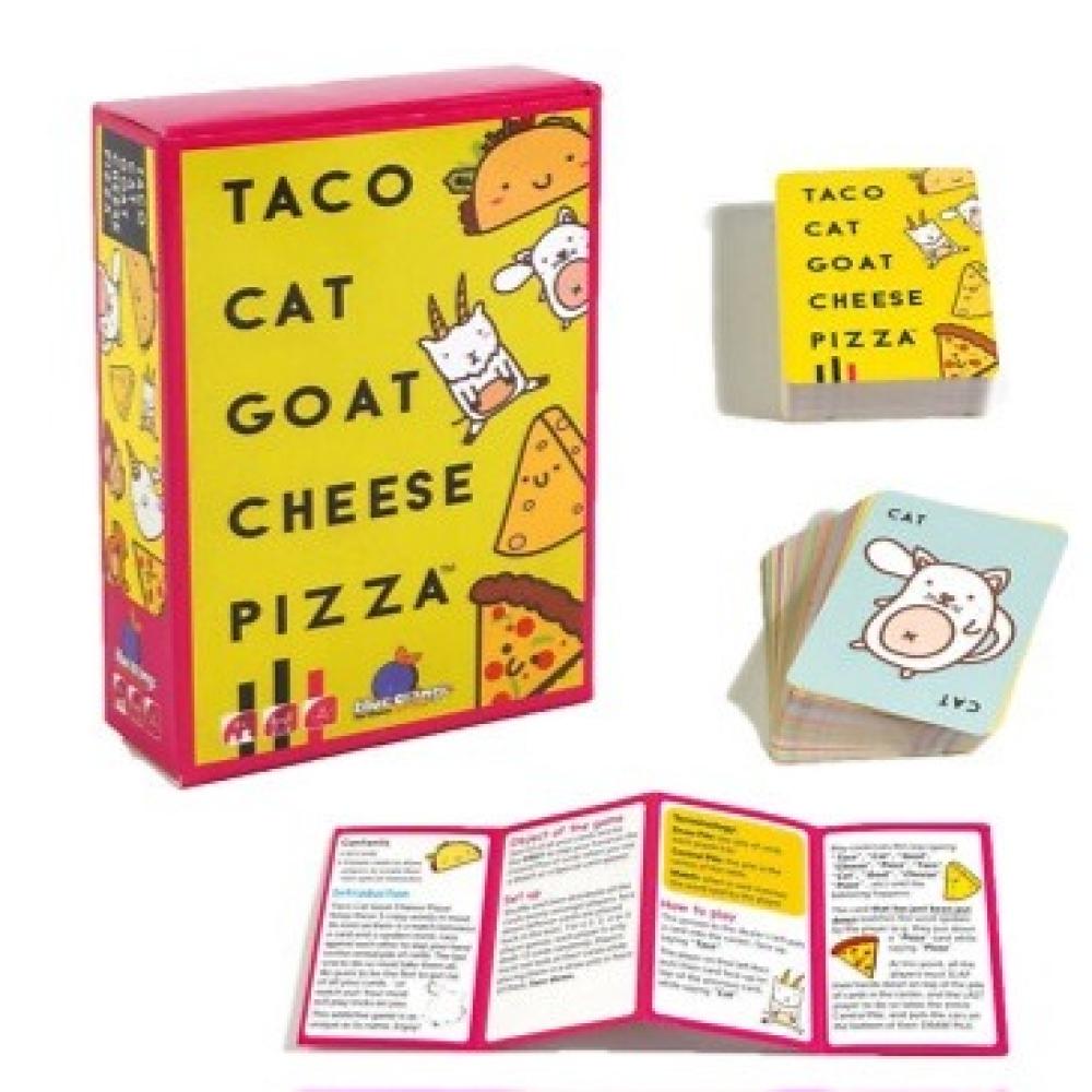 لعبة بطاقات جماعية سريعة الإيقاع وممتعة. يضع اللاعبون بطاقاتهم بالتسلسل مع ترديد الكلمات "تاكو، قطة، عنزة، جبنة، بيتزا". عندما تتطابق الكلمة المنطوقة مع البطاقة المكشوفة، يجب على جميع اللاعبين صفع كومة البطاقات في المنتصف بسرعة. آخر لاعب يصفع الكومة يأخذ جميع البطاقات، والهدف هو التخلص من جميع الأوراق للفوز.