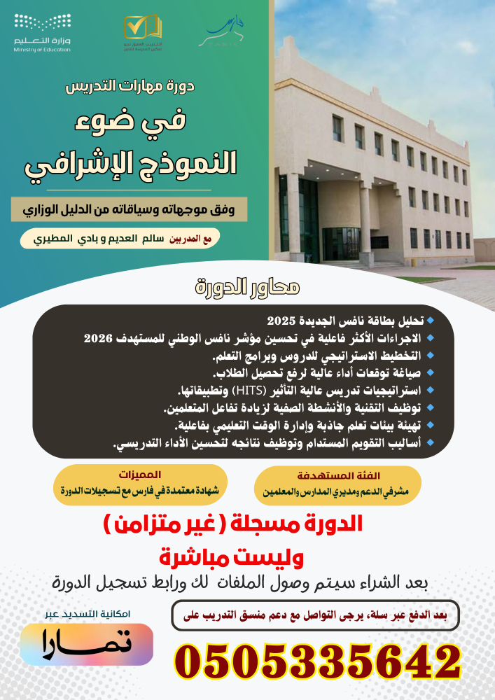 🎓 دورة مهارات التدريس في ضوء النموذج الإشرافي