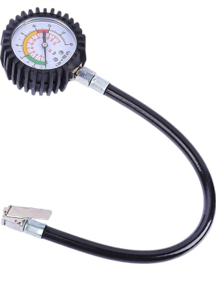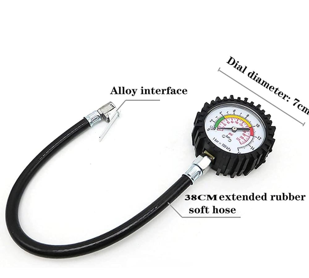 مقياس ضغط الإطارات ٢٢٠ رطل/بوصة مربعة و١٦ بار، مع خرطوم هواء مرن ٣٨ سم/١٥ بوصة، مقياس ضغط الإطارات الرقمي، مناسب للسيارات والدراجات النارية والدراجات الهوائية، وأداة قياس إطارات السيارات
