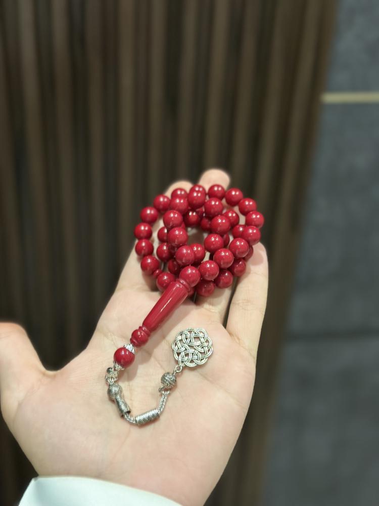 الخامة مايسمى بالبكلايت خفيفة الوزن مصممة للاستخدام اليومي، تتميز بتصميم مريح وأنيق، عليها طربزون من المعدن مما يعطي السبحة جمال وفخامة.