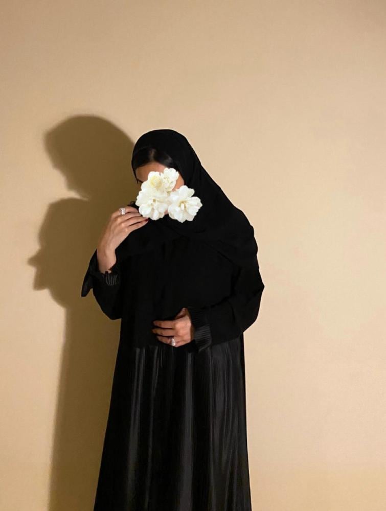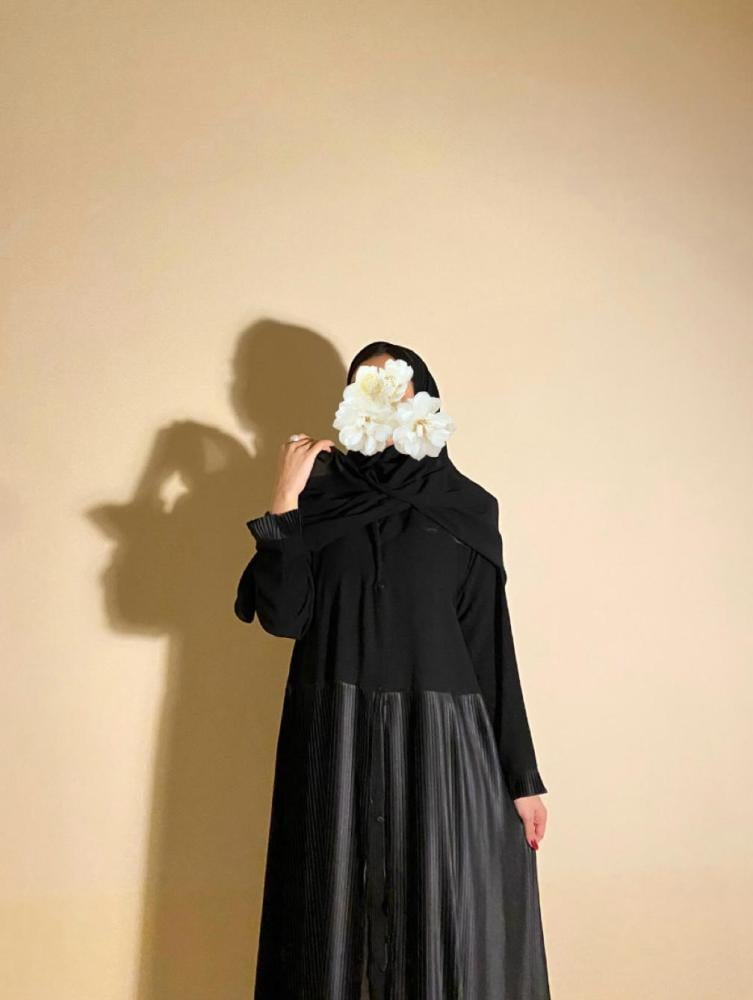 الطرحة : باللون الاسود وطرف حرير مكسر