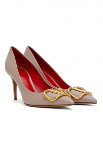 Grained calfskin slingback heels in black. · Logo hardware at pointed toe · Adjustable pin-buckle slingback strap · Gold-tone logo stamp at leather footbed · Covered stiletto heel with rubber injection · Leather sole in tan · Platform: H1 in · Heel: H4.75 in Supplier color: Nero