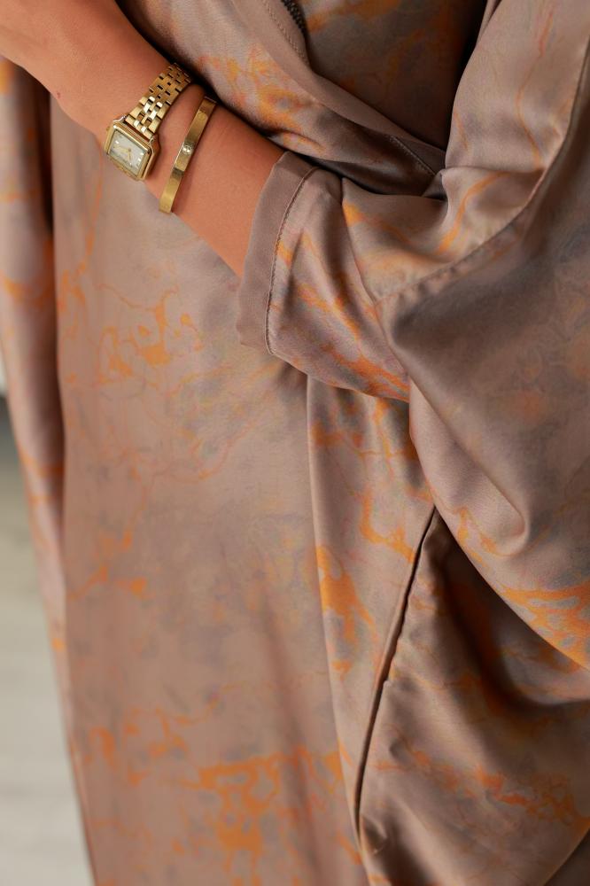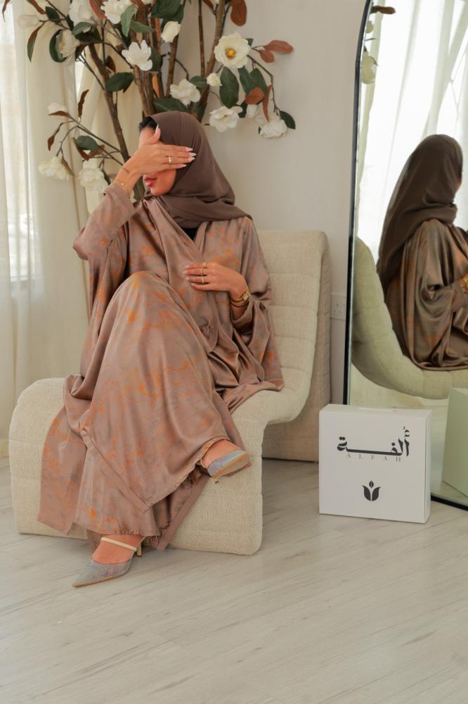 {عباية دانه} {بشت} {حرير مشجر اورنج بيج}