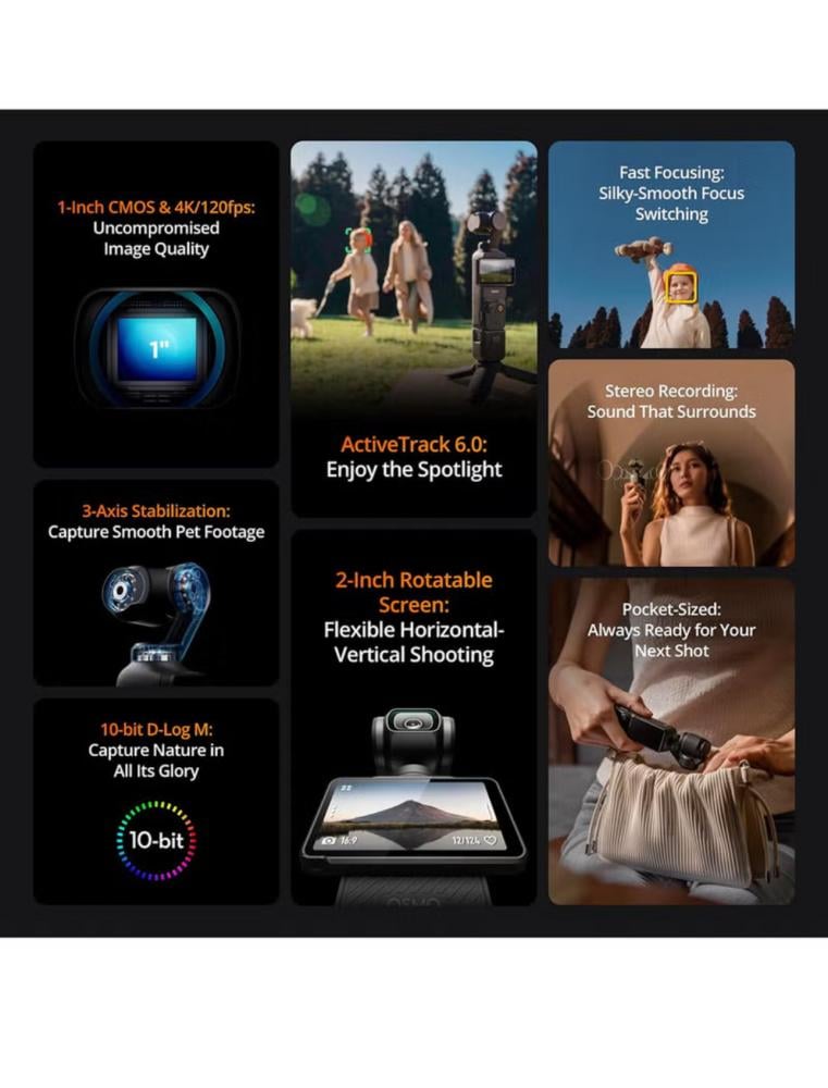 دي جي آي كاميرا Osmo Pocket 3 لتسجيل الفيديو مع CMOS مقاس 1 بوصة وفيديو بدقة 4K/120 إطارًا في الثانية، تثبيت ثلاثي المحاور، تركيز سريع وتتبع الوجه/الأشياء، شاشة لمس صغيرة قابلة للدوران مقاس 2 بوصة، كاميرا فيديو صغيرة للتصوير الفوتوغرافي Youtube