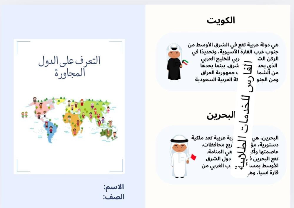 مشروع مطوية الدول المجاورة وحدة اصدقائي وجيراني - لغتي ثاني ابتدائي الترم الأول -