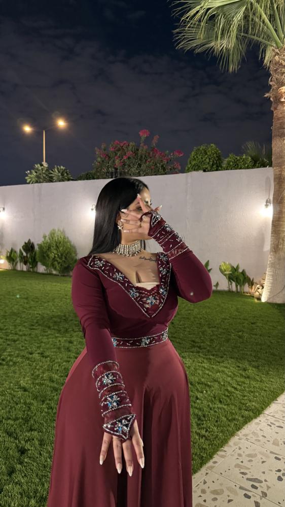 فستان كلوش شك مرصع ب احجار فخمه وحزام مشغول