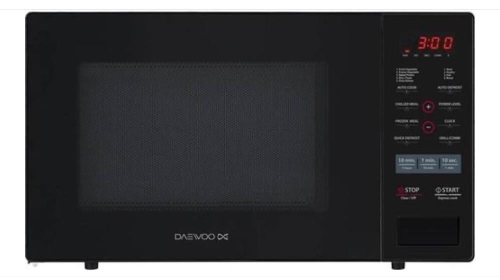 الماركة:دايوالسعة بالتر : 26 لتراللون: أسودآلية فتح الباب: زر ضغطقوة الميكرويف: 900 واطنوع الشاشة: ديجيتالمستويات طاقة الميكروويف: 10 مستويات طاقةميزات الطبخ:إذابة الثلوج , طبخ