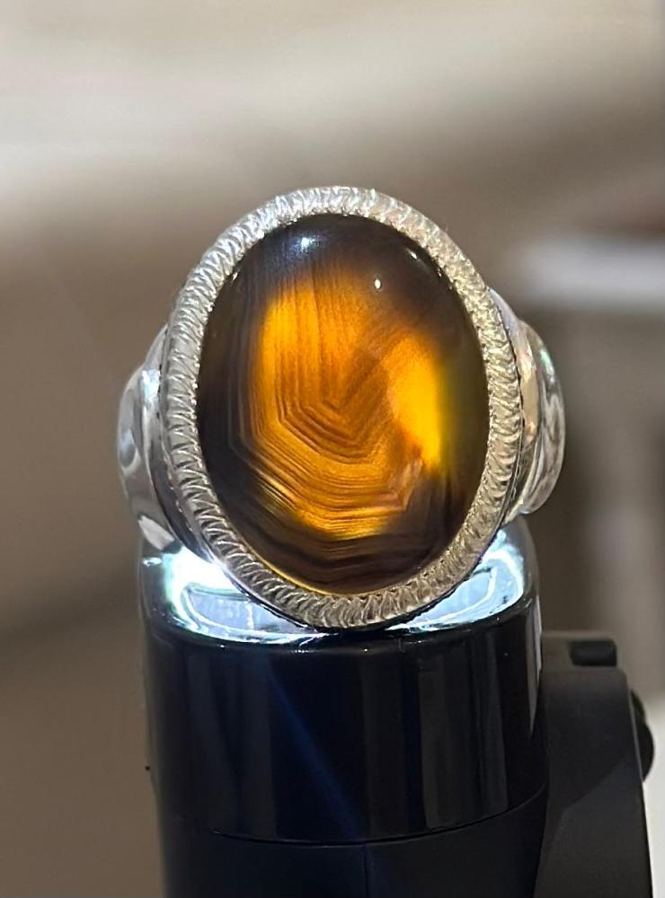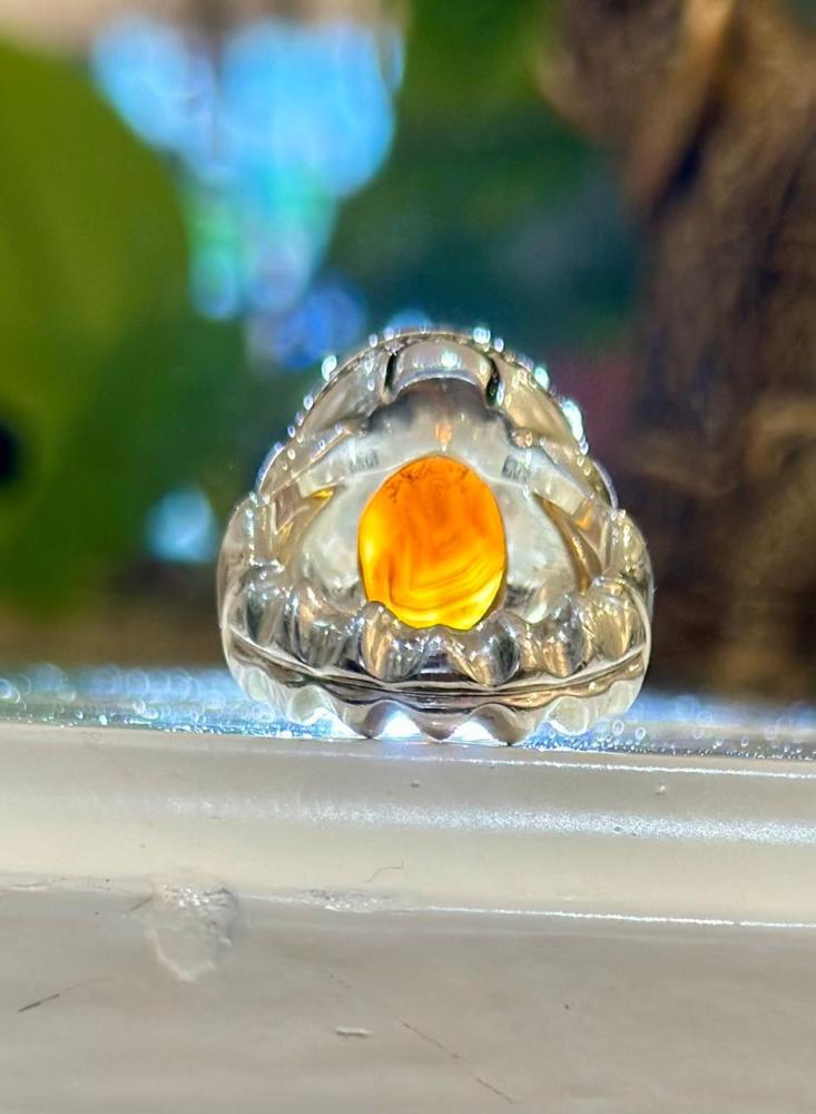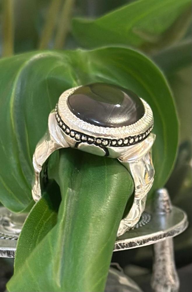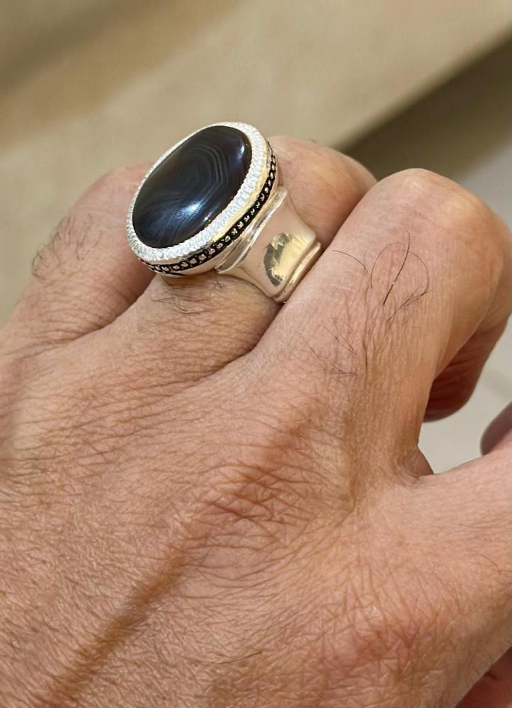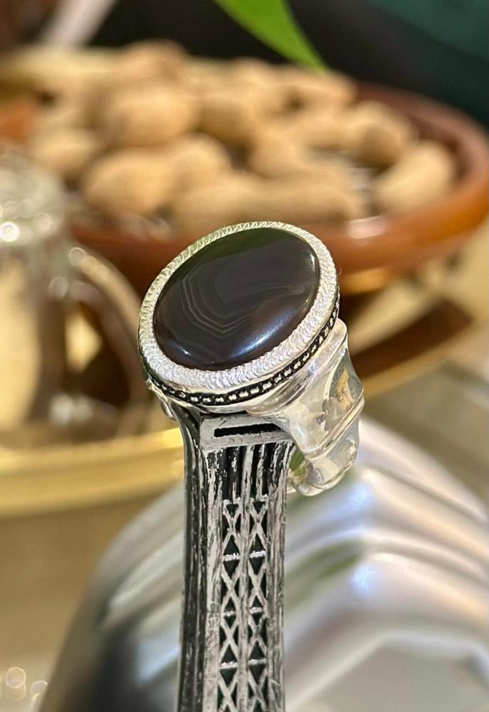 الحجر الرئيسي: عقيق جزع يماني حجر معالج / طبيعي: 100%حجم الحجر: 20×15شفافية الحجر: عاليشكل الحجر : دائريمقاس الخاتم : 20 عربيعيار الفضه : 990صياغة الحجر : عارف شهاده : لا