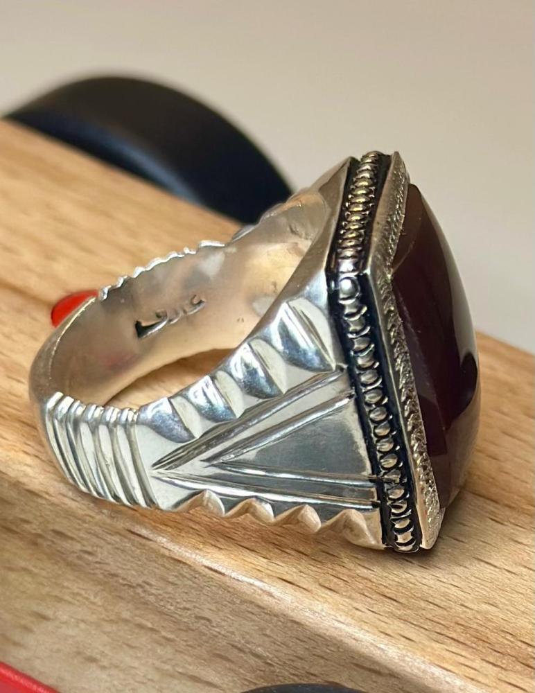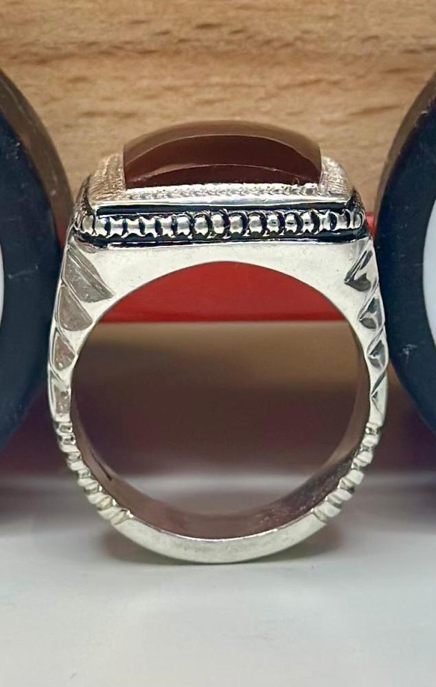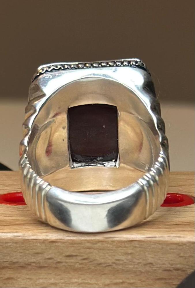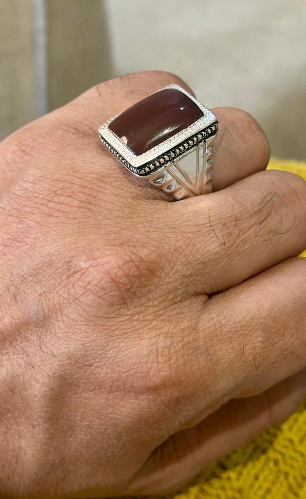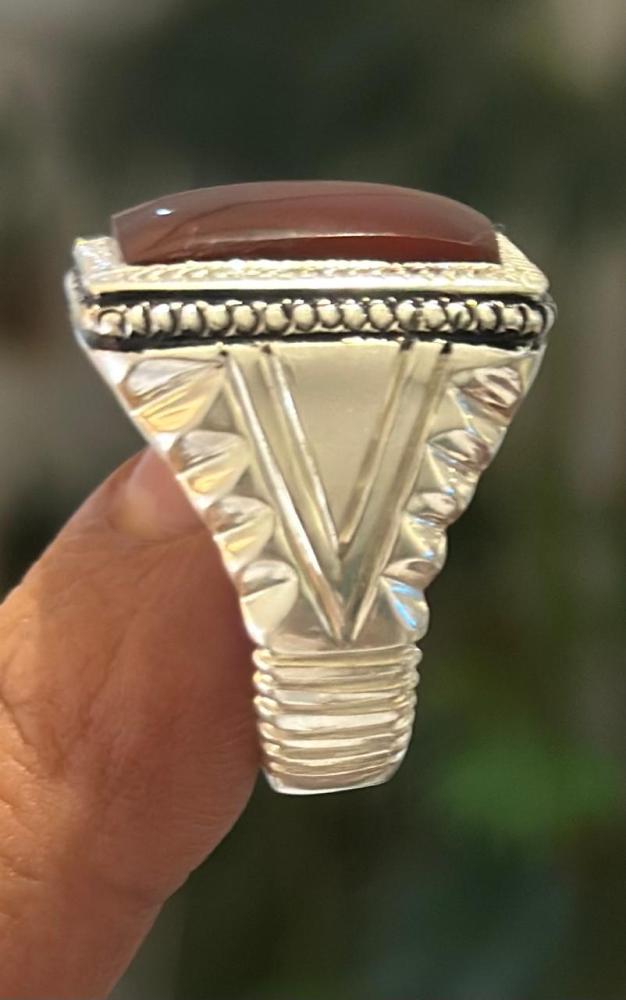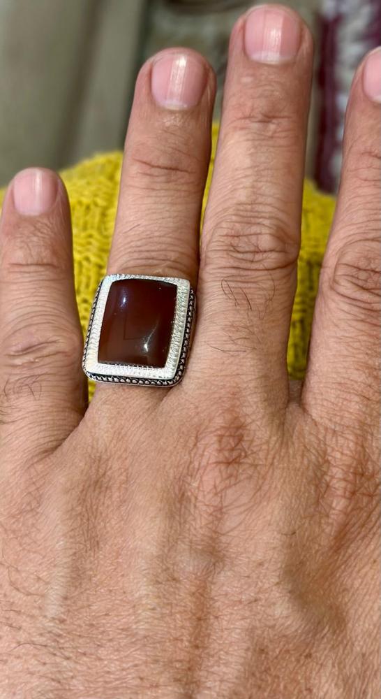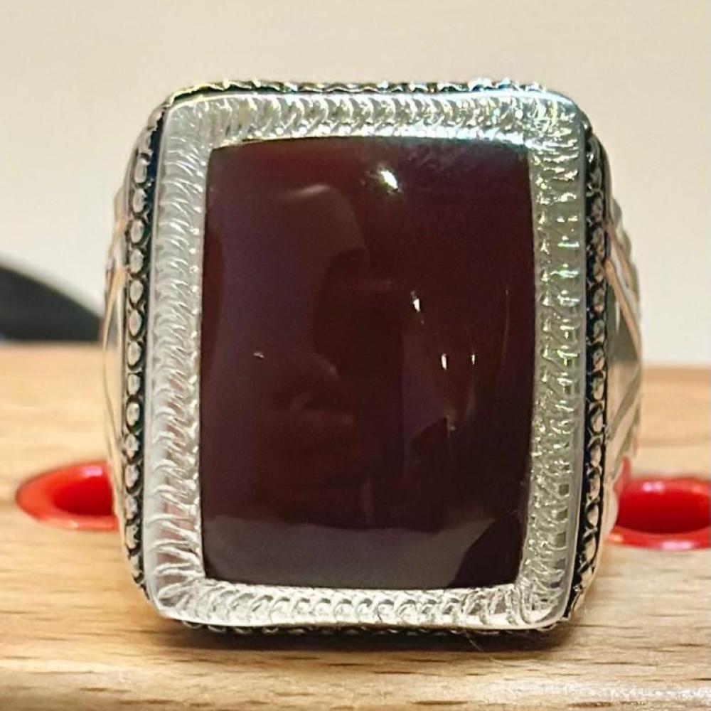 الحجر الرئيسي: عقيق يماني كبديحجر معالج / طبيعي: 100%حجم الحجر: 20×15شفافية الحجر: عاليةشكل الحجر : مربع مقاس الخاتم : 22 عربيعيار الفضه : 925صياغة الحجر : عارفشهاده : لا
