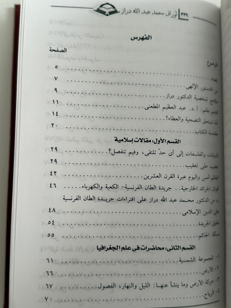 أوراق محمد عبد الله دراز في الإسلام والدعوة واللغة والأدب والنقد والتاريخ والجغرافيا