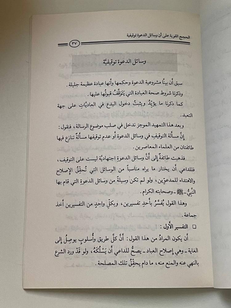 الحجج القوية على أن وسائل الدعوة توقيفية عقد السلام بن برجس بن ناصر آل عبد الكريم دار المنار ١٠٢ صفحة