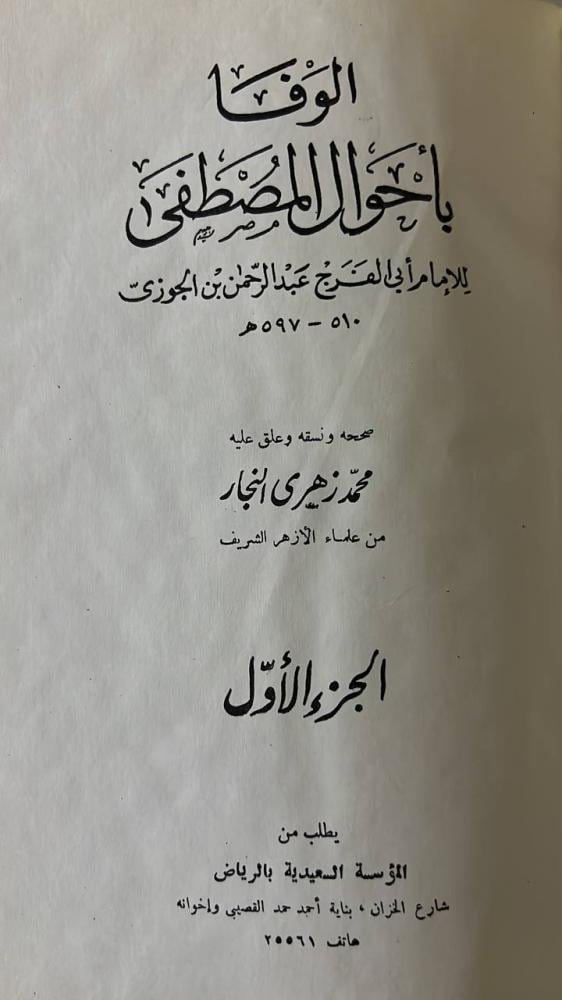 الوفا بأحوال المصطفى صلى الله عليه 2/1 السعيدية