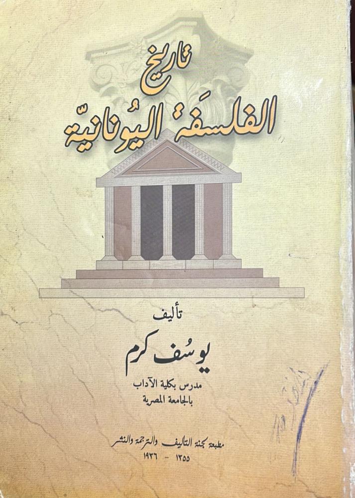 تاريخ الفلسفة اليونانية د. يوسف كرم مطبعة لجنة التأليف والترجمة والنشر 331 صفحة - ورق أبيض" مستعمل نظيف "