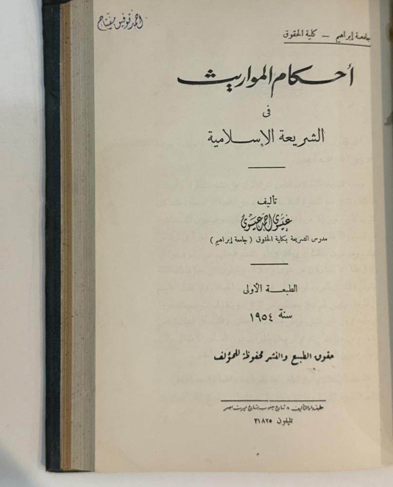 ٢- أحكام المواريث في الشريعة الإسلامية ١٩٥٤م