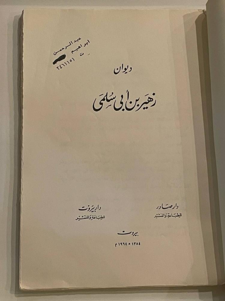 ديوان زهير بن أبي سلمى / غلاف دار صادر