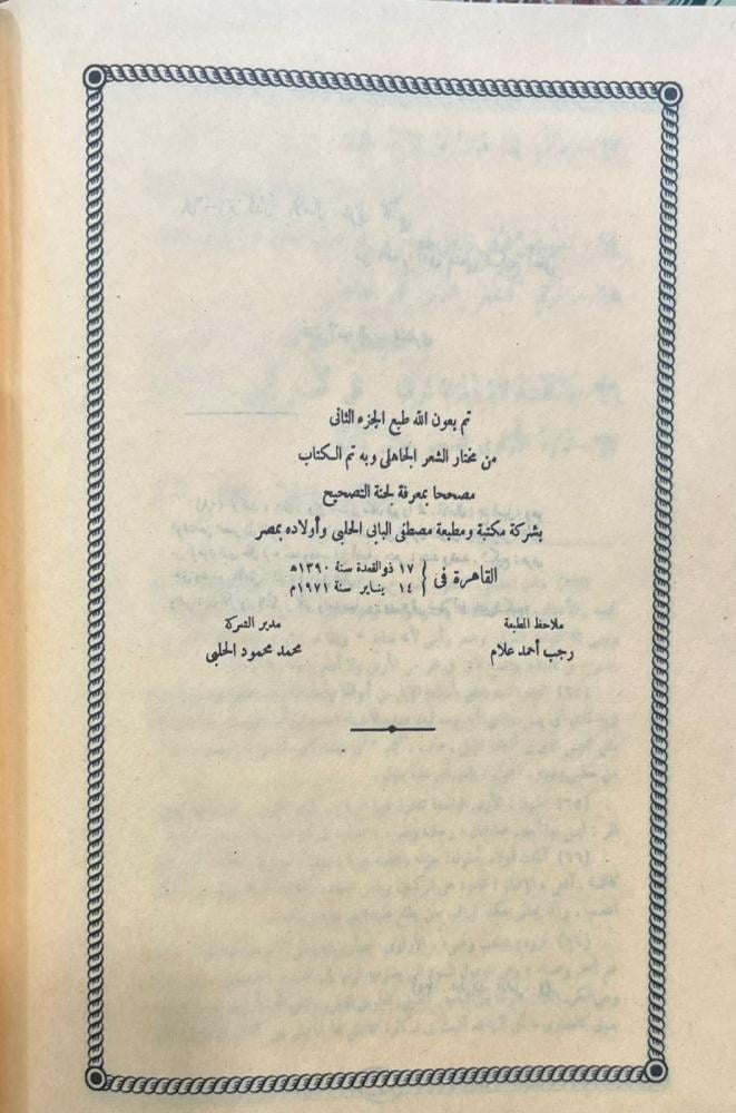 مختار الشعر الجاهلي شرحه وحققه وضبطه: مصظفي السقا أعاد طباعته عن النسخة القديمة شركة القدس / مصر مجلدان ورق أصفر - جديد