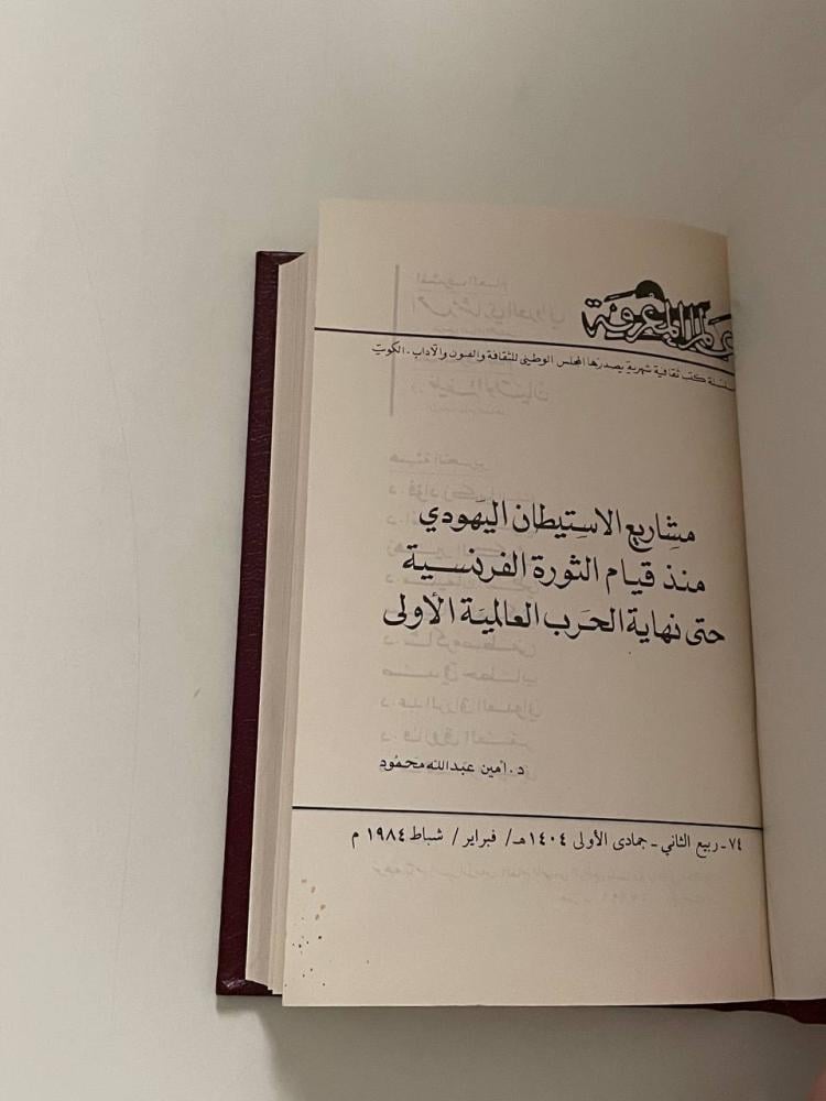 مشاريع الاستيطان اليهودي منذ قيام الثورة الفرنسية حتى نهاية الحرب العالمية الأولى - سلسلة عالم المعرفة