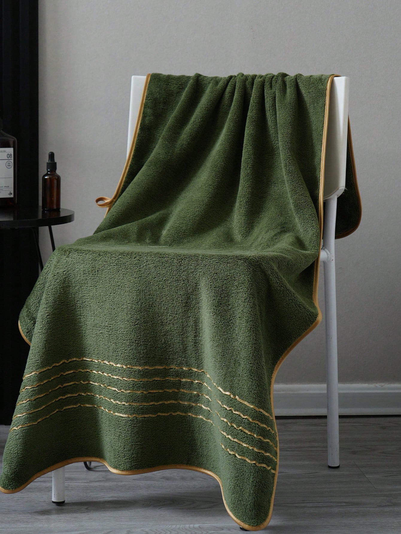 1 قطعة منشفة حمام، متوفرة بألوان متعددة، 70*140 سم ألياف بوليستر، تصميم بنقشة خيوط ذهبية بسيطة، حجم