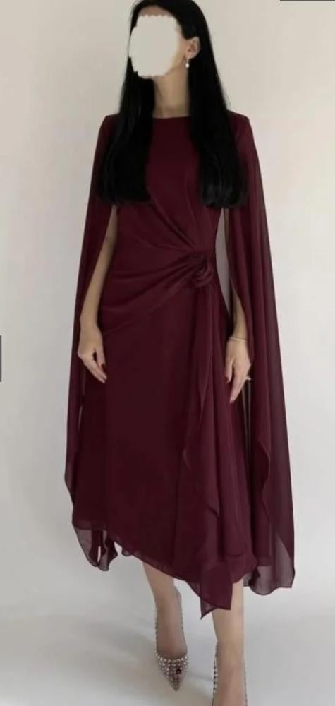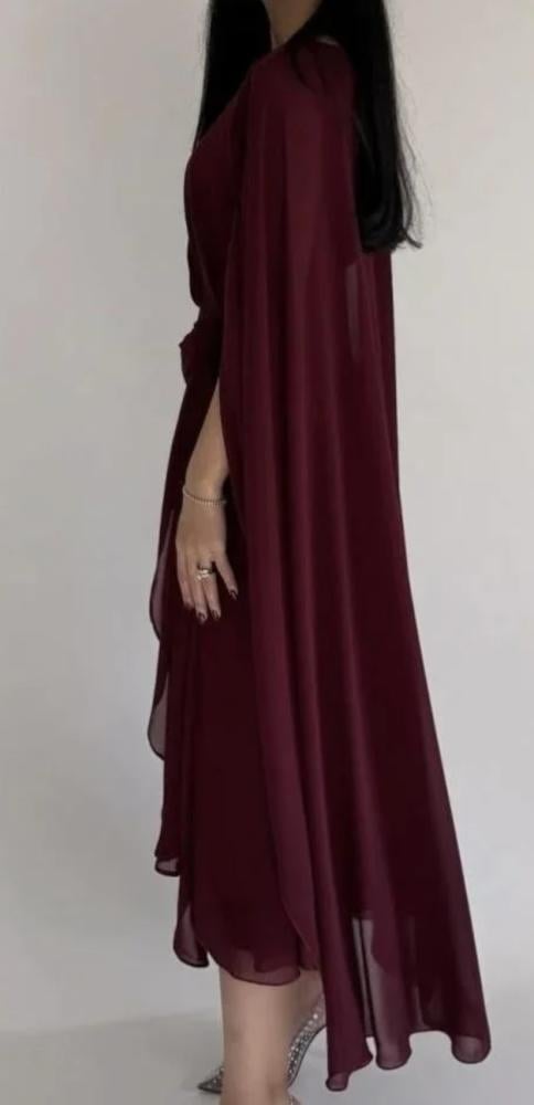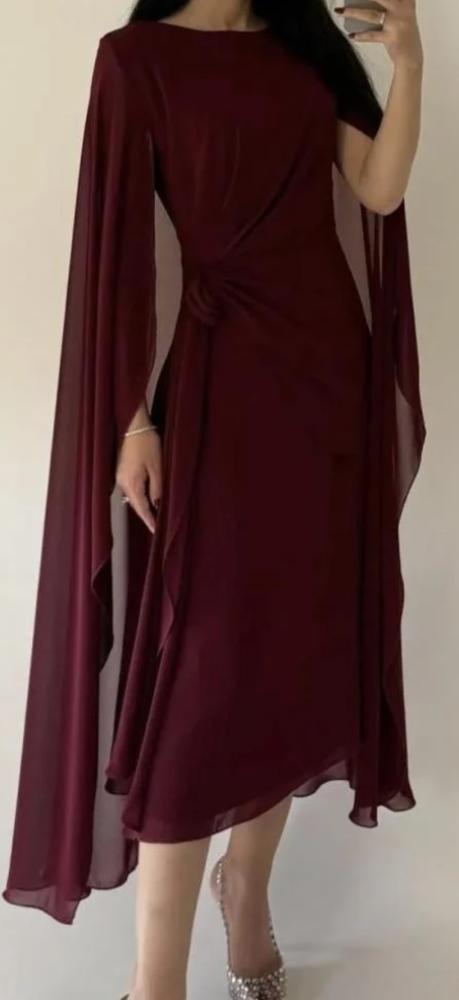 هذا الفستان هو رمز للأناقة والجاذبية، يتميز بلونه الأحمر العنابي الفاخر الذي يعكس الفخامة والرقي. صُمم من قماش التول الشفاف المطرز برقة، مع أكمام طويلة شفافة تضفي لمسة أنثوية ساحرة. يمتاز بقصته الانسيابية التي تبرز جمال القوام، ما يجعله خيارًا مثاليًا للسهرات والمناسبات الراقية. تصميمه يعكس توازنًا مثاليًا بين البساطة والفخامة، ليترك انطباعًا لا يُنسى.