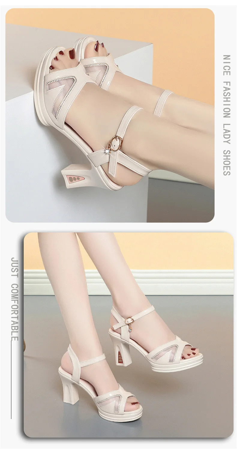 صنادل عالية من الجلد قابلة للتنفس للنساء ، أحذية مكتنزة ، كتلة شبكية ، طراز المكتب ، الصيف ، جديد ، الموضة ، مقاس 35-40 ،