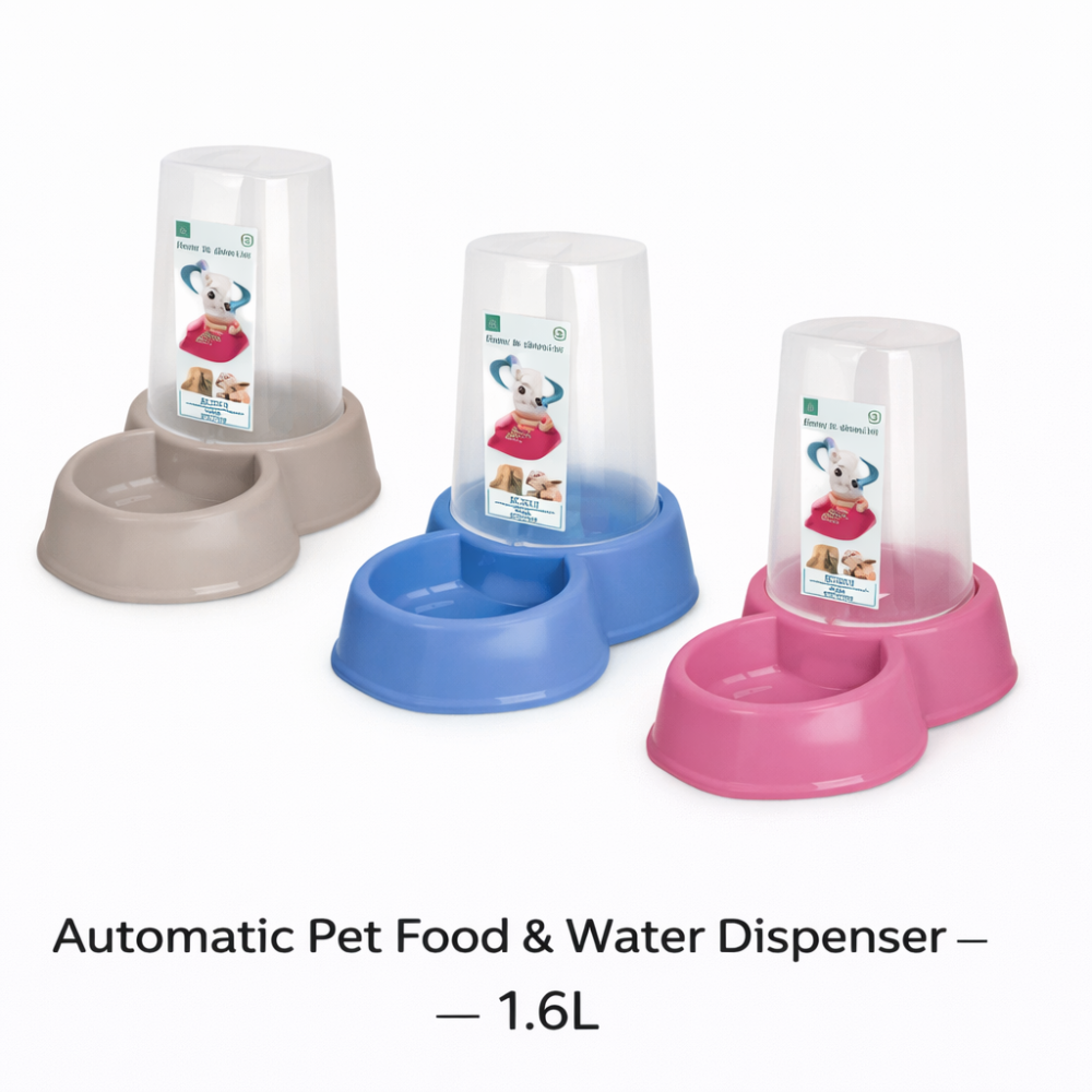 موزع طعام ومياه أوتوماتيكي للحيوانات الأليفة بسعة 1.6 لتر، مصمم لتوفير الطعام أو الماء بشكل مستمر للحيوانات الأليفة مثل القطط والكلاب الصغيرة. يساعد التصميم الذكي على تدفق الطعام أو الماء تلقائيًا عند انخفاض المستوى في الوعاء.