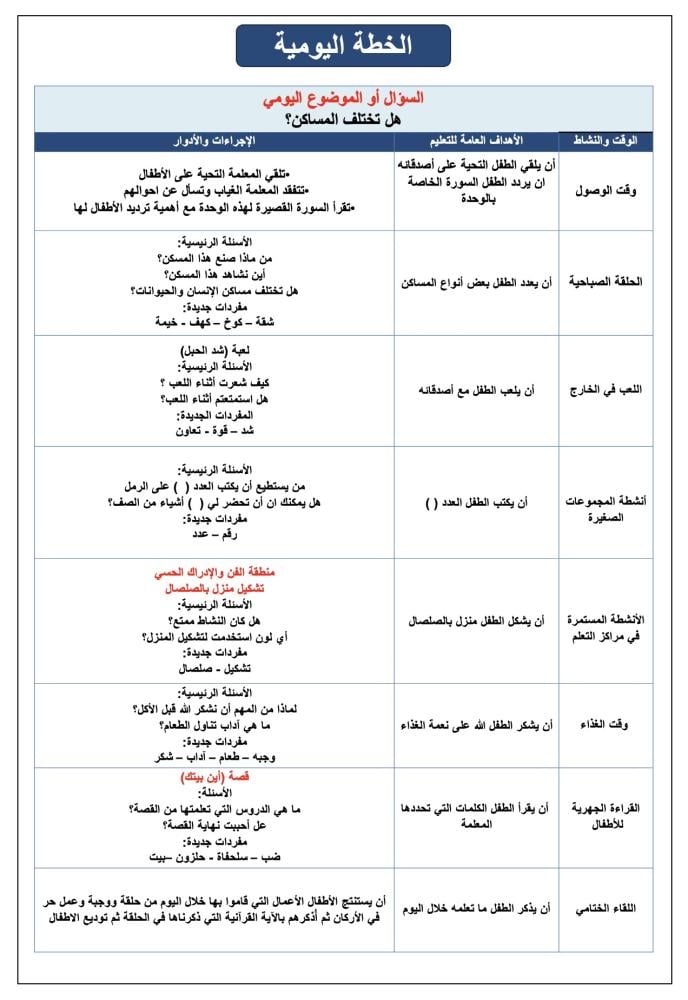 خطة يومية لوحدة المسكنمدة الخطة ٣ أسابيعجميع الملفات قابلة للتعديللانسمح بنشر المنتج أو بيعه للاستخدام الشخصي فقط.