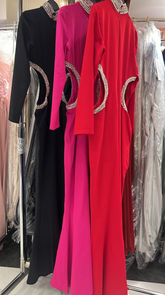 - اسم المنتج: فستان سهرة مفتوح من الخصر بأكمام طويلة