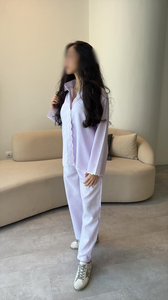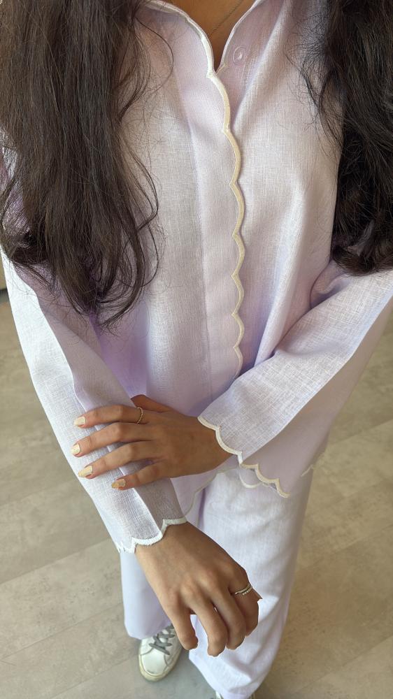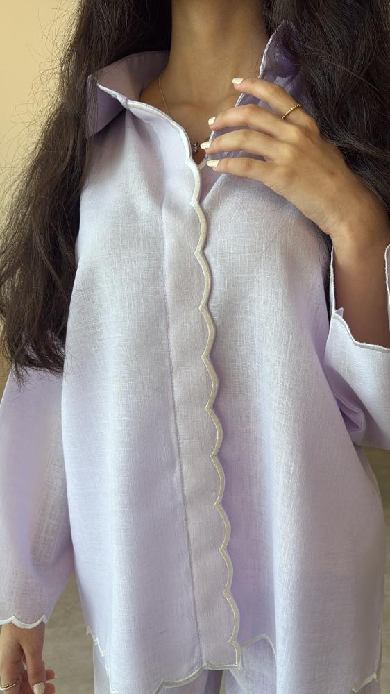 طقم لنن صيفي باللون الموف الفاتح