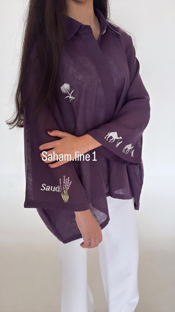 وتطريز الجمال و كلمه Saudi مع ورد الخزامى على الاكمام