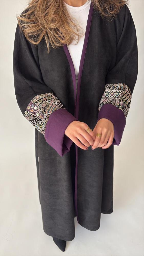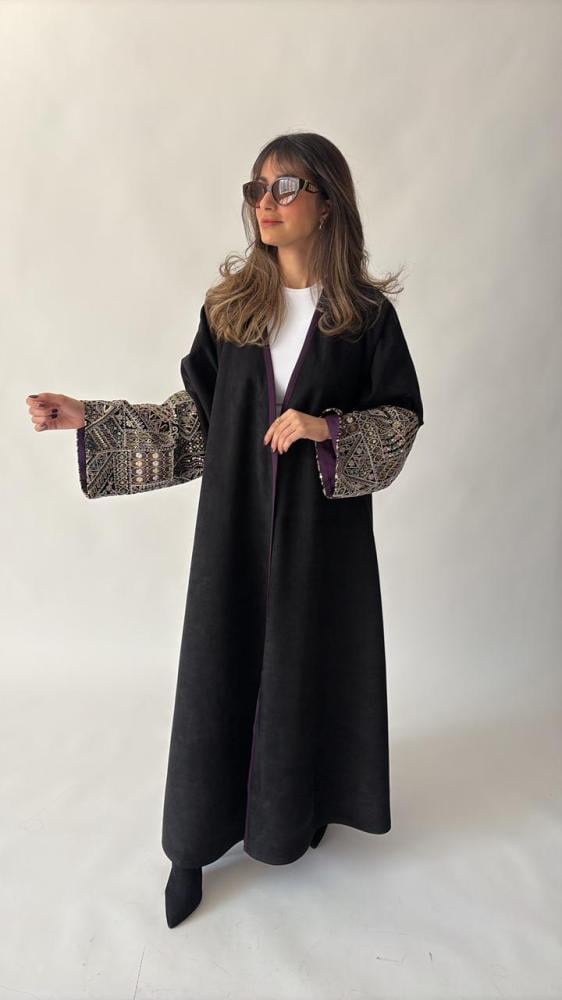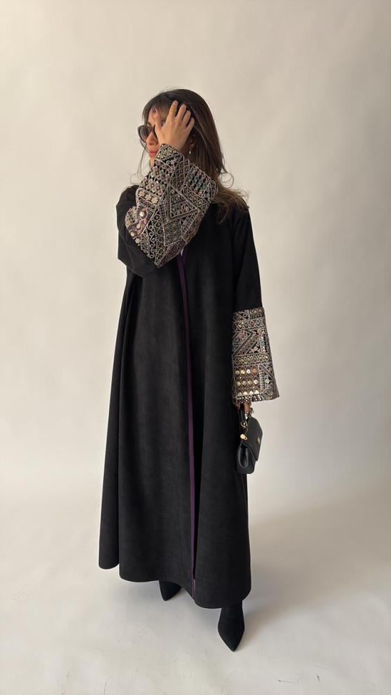 عباية كلوش قماش شامواه و الأكمام تطريز هندي مبطنة بقماش طرحه اندونوسي