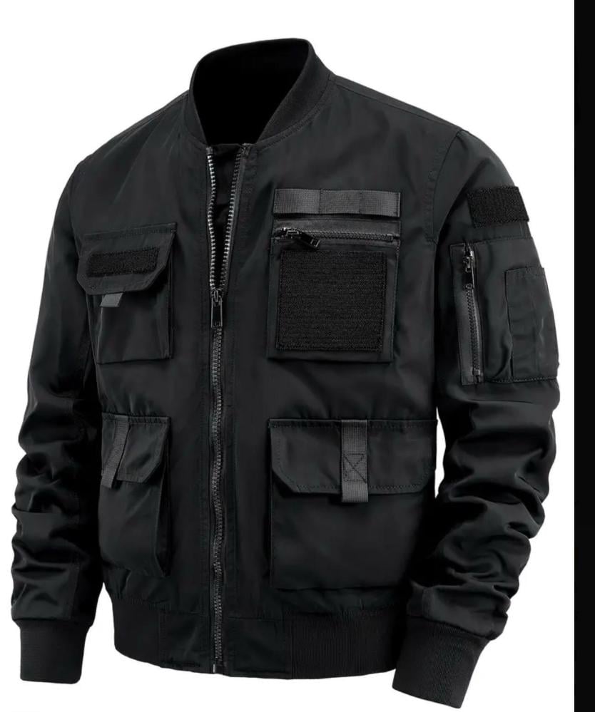 جاكيت بومـبر بتصميم تكتيكي عسكري لون اسـود
