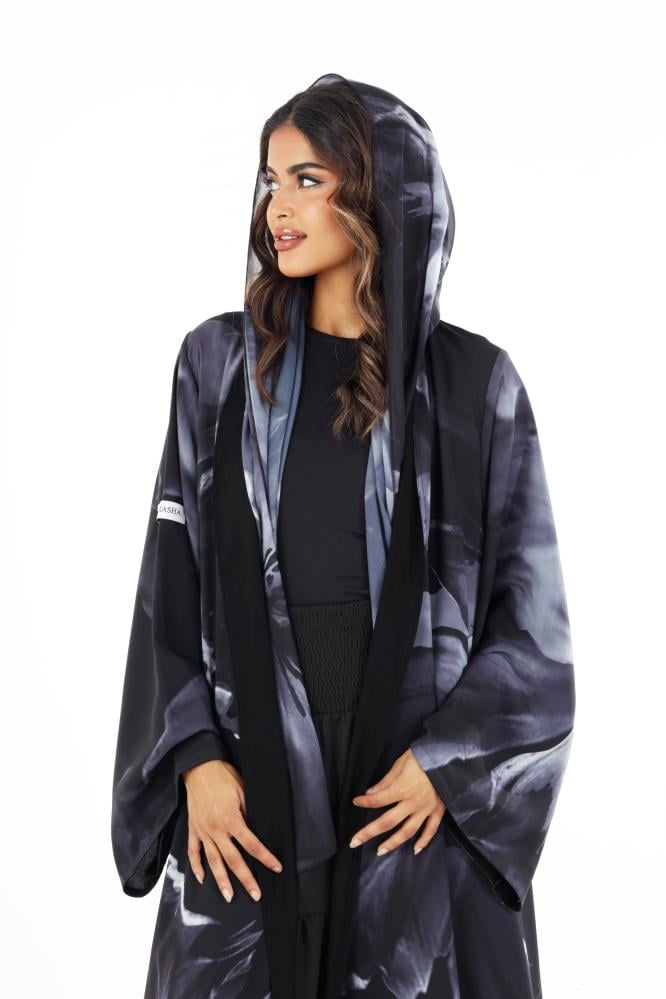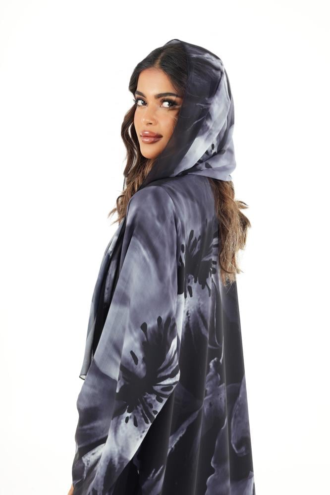 عباية شيفون ناعمة ببطانة بلون اسود أنيق تعطيك لمسة فريدة من نوعها.
