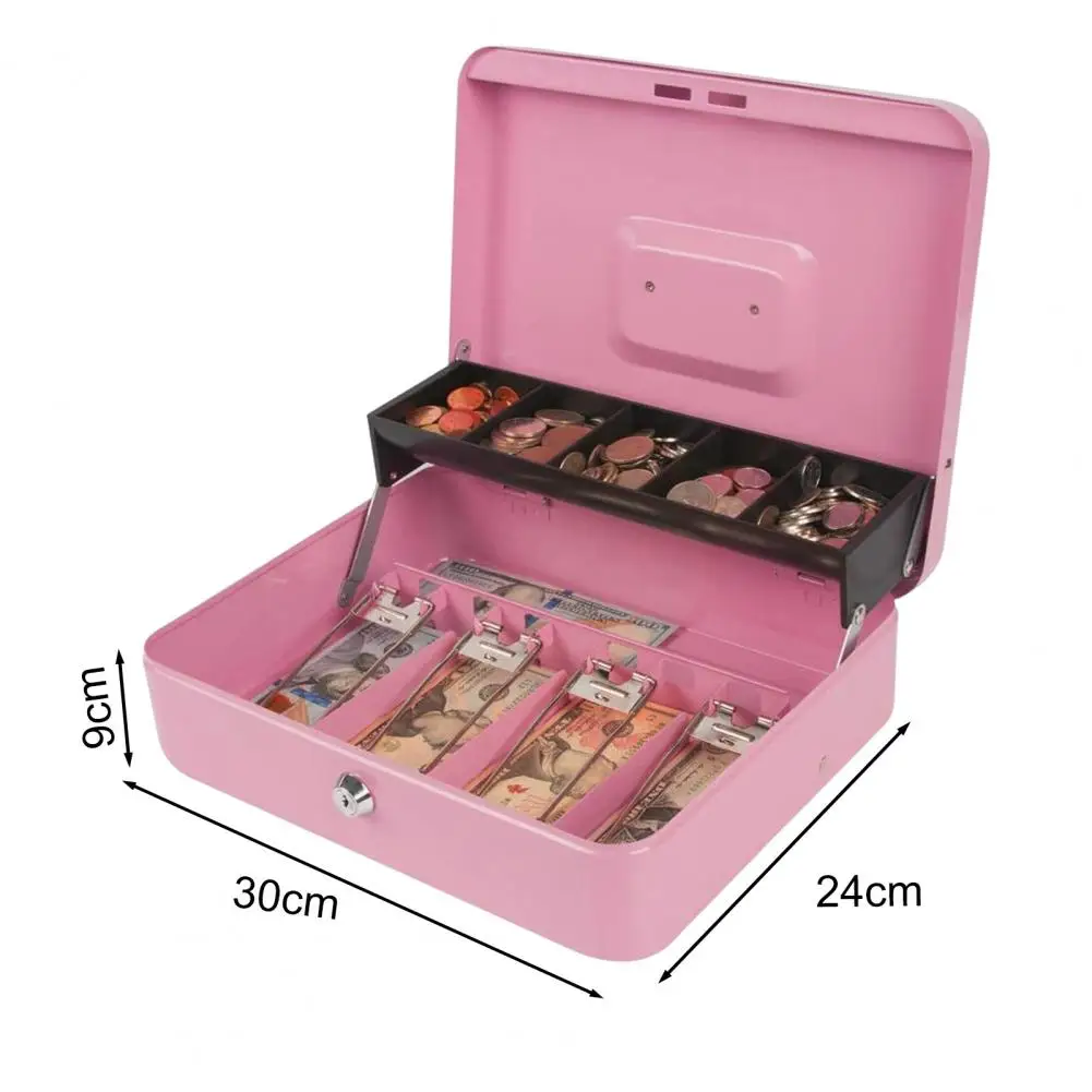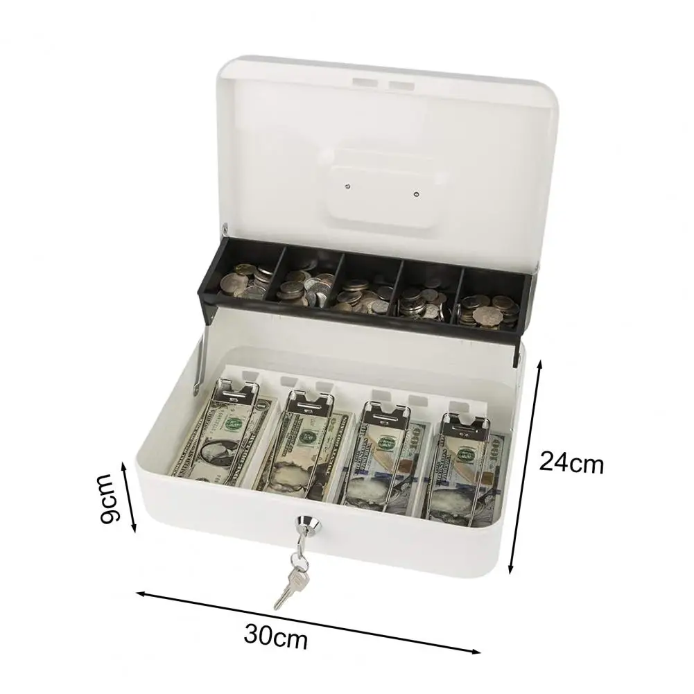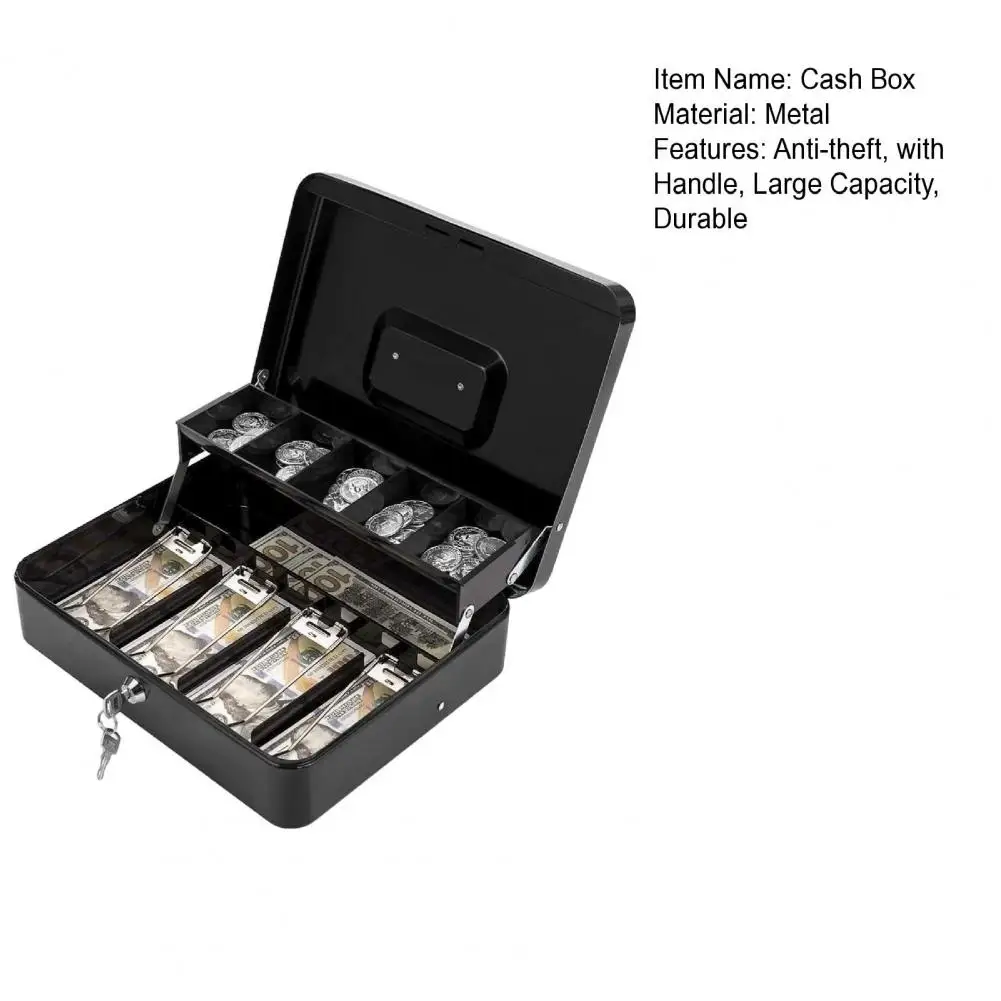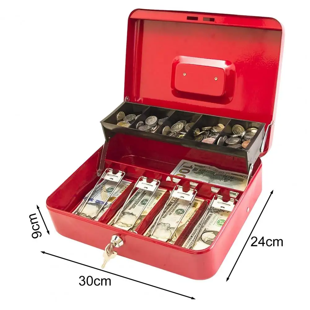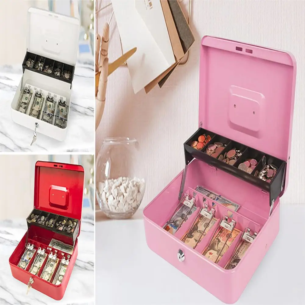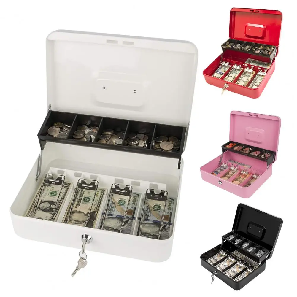 صندوق تخزين النقدية مع قفل 2 مفاتيح صندوق نقود معدني مع علبة نقدية سعة كبيرة متعددة الأقسام صندوق آمن بقفل محمول
