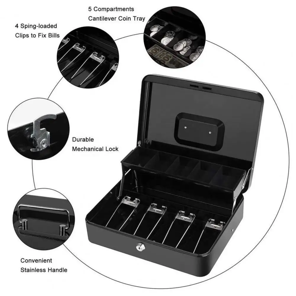 يتميز الدرج الكابولي من صندوق المال هذا بـ 5 أقسام مستقلة مع فواصل و 4 مفصلات زنبرك متينة لتنظيم النقد بكفاءة. قل وداعًا للفوضى والارتباك لأن هذا التصميم سهل الاستخدام يحافظ على كل شيء مرتب بعناية ، مما يجعل من السهل الوصول إلى مستلزماتك.