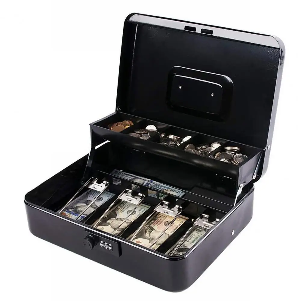 يوفر هذا الصندوق النقدي الكبير مساحة واسعة للنقد والعملات المعدنية والمجوهرات والساعات والمزيد. المقبض القابل للطي يجعله مناسبًا للحمل ، مما يضمن حماية ممتلكاتك الثمينة في المنزل أو أثناء السفر.